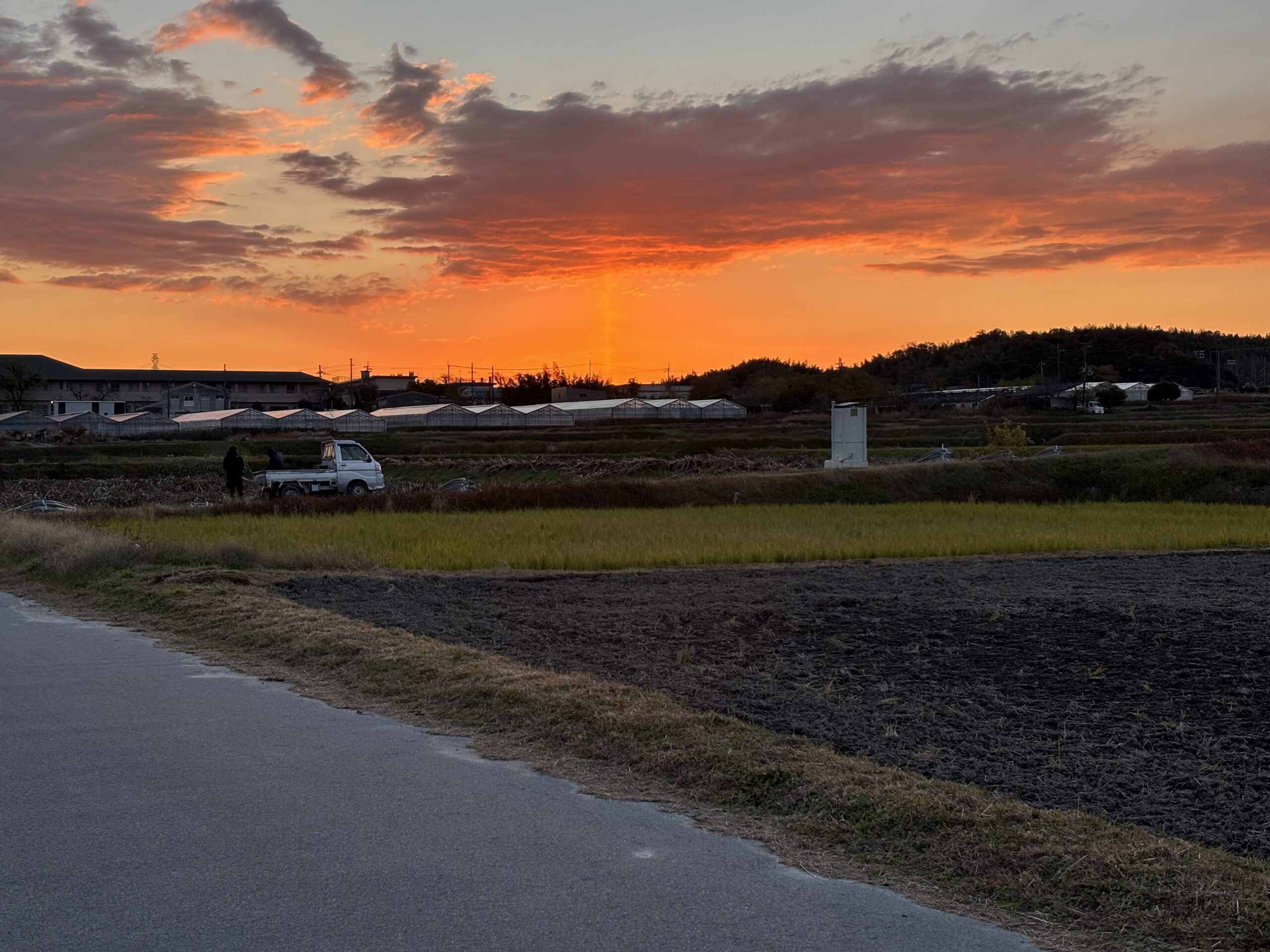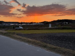 今日の明け方、東の空に太陽柱が出ていました。冬場の冷え込みのきつい朝や夕方に観察できるようです。